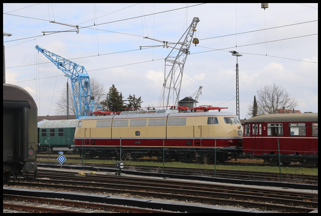 Vom Bahnsteig des Bahnhof Nördlingen aus fotografierte ich am 17.3.2025 u. a. die E 03002, die offensichtlich äußerlich frisch aufgearbeitet worden ist. Das Museum selbst war zu diesem Zeitpunkt nicht geöffnet. Auf dem Gelände herrschte reges Treiben rund um die Drehscheibe. Offensichtlich war ein grosser Arbeitseinsatz angesagt.