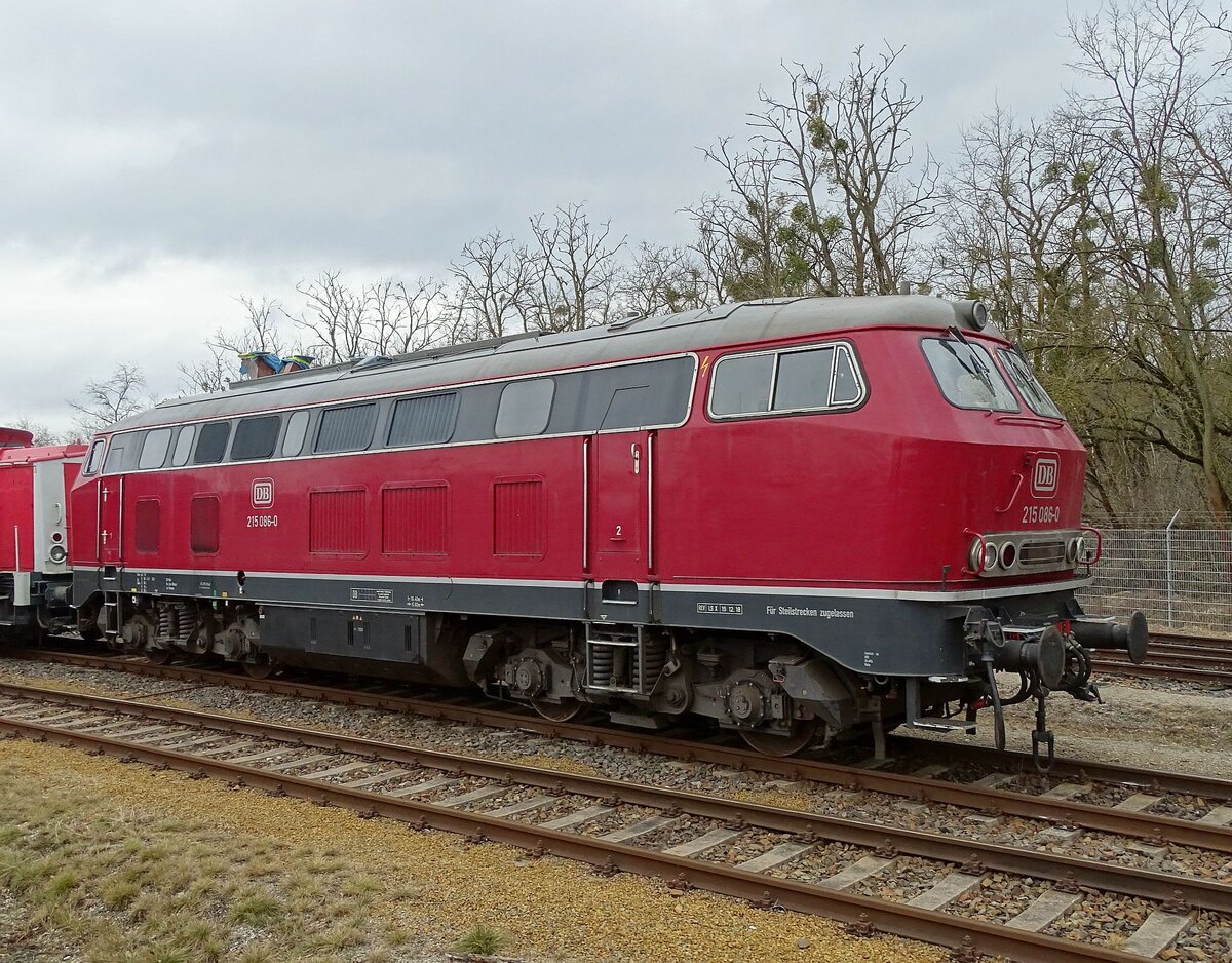 215 086 der Rheinischen Eisenbahn (RE) am 01.03.25 bei der WISAG im Ausbesserungswerk Brieske.