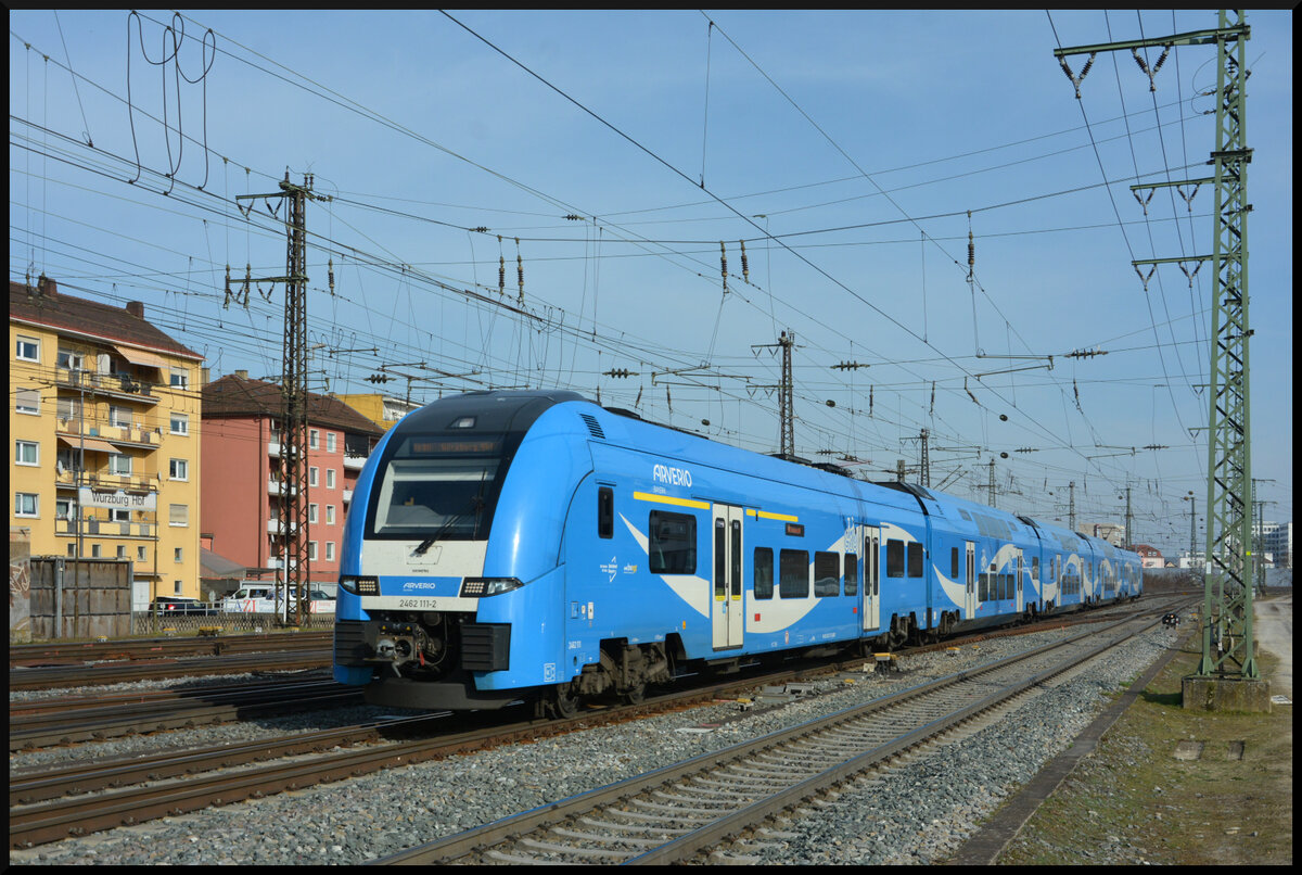 Arverio Bayern 2462 111-2 am 09.03.2025 als RE80 Treuchtlingen - Würzburg kurz vor dem Ziel.