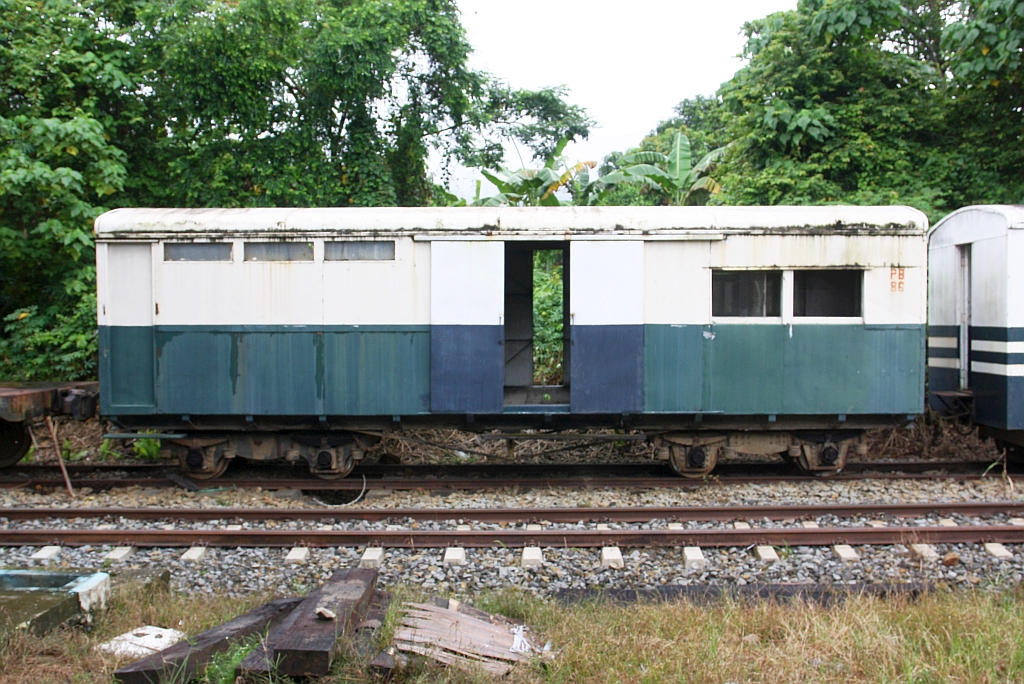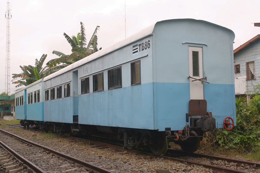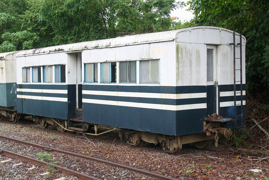 Werkstatthalle des JKNS Depot Tenom am 13.Februar 2025. - Das Gleis zwischen der Halle und den Wagen rechts ist die ehemalige Strecken des 1970 eingestellten Abschnittes nach Melalap.