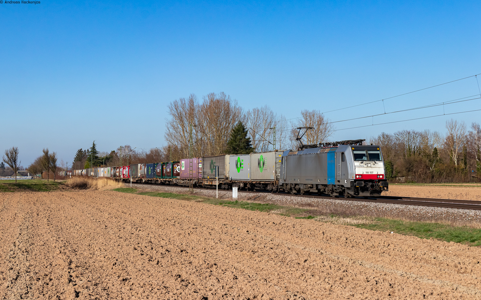 Meine beiden Lieblings-Werbeloks von TXLogistik waren am Nachmittag des 01. Dezember 2024 als fotogenes Tandem vor dem KLV-Zug DGS 43153 von Köln Eifeltor nach Verona Q.E. zu beobachten. Die 193 555 vor der 193 640 konnte ich bei Niederaudorf im Inntal fotografieren. Leider ist diese Konstellation so nicht mehr möglich. Die 193 640 wurde inzwischen an den Vermieter Beacon Rail Leasing zurück gegeben. Die mit Motiven entlang der Brenner-Strecke gestalte und mit dem Slogan "connected by rail" versehene Werbelok verkehrt aktuell für Helrom, ist aber in ihrem ursprünglichen Einsatzgebiet verblieben.