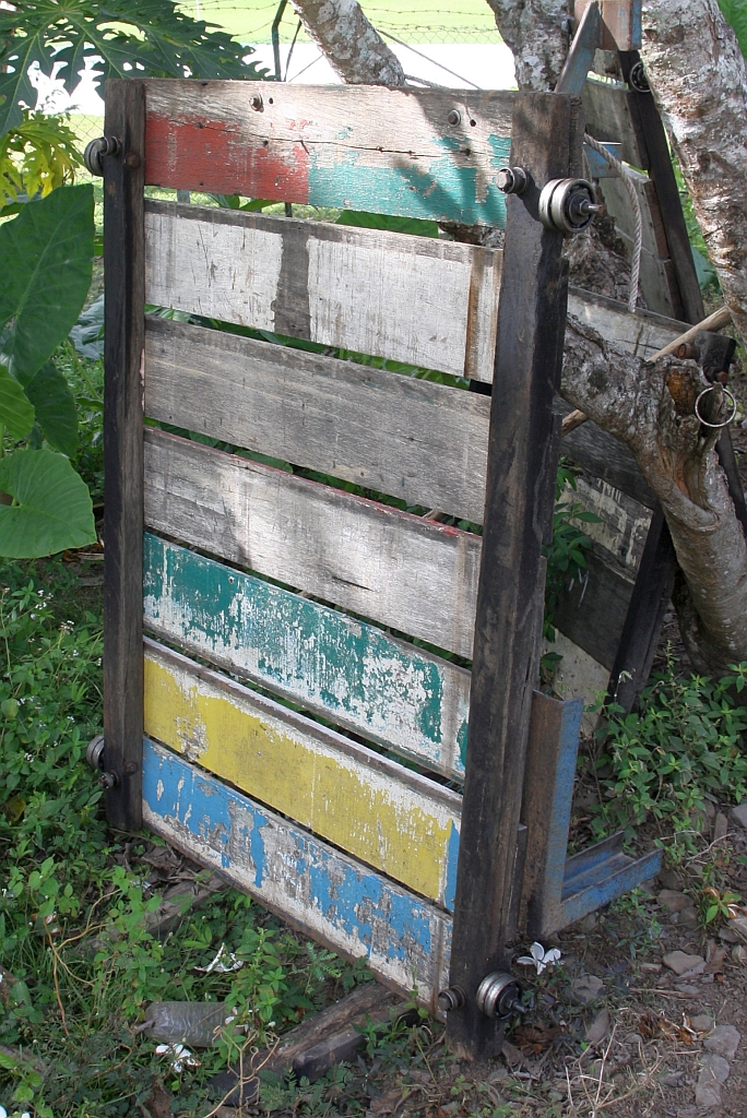 Unter der Trasse führt ein Weg entlang. Für das Foto wurde die Kamera durch das Geländer gehalten.