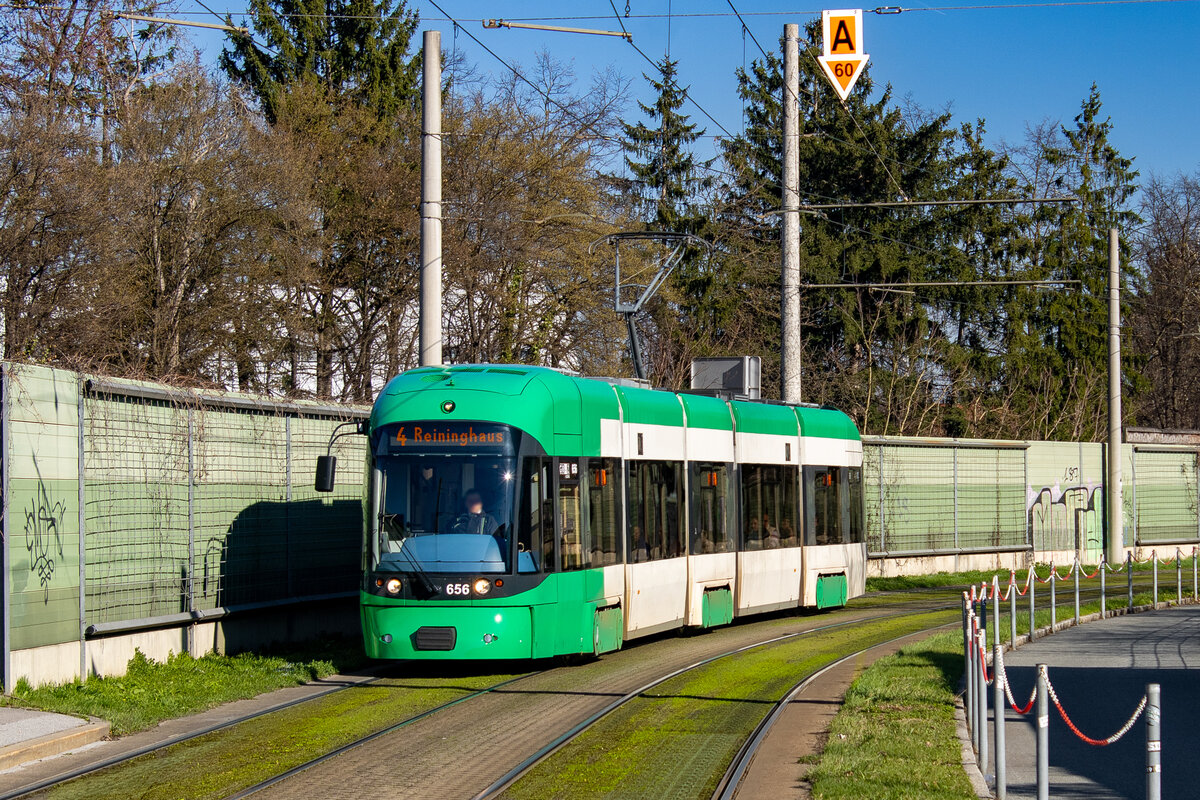Graz. Mittlerweile ist auch der Frühling in Österreich angekommen. An dem warmen 19.03.2025 ist Triebwagen 503 im Neubaugebiet Reininghaus zu sehen.