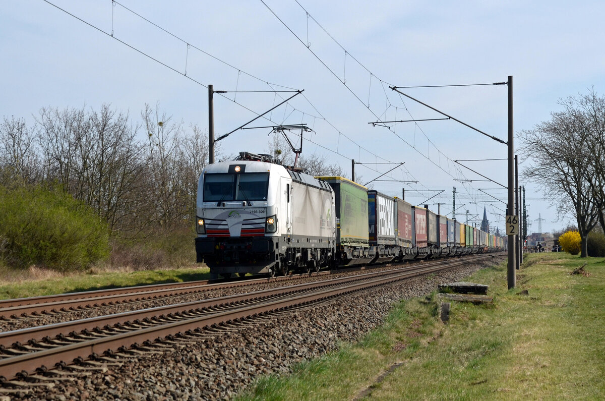 7193 309 der TX Logistik schleppte am 02.04.25 einen KLV-Zug durch Greppin Richtung Dessau.