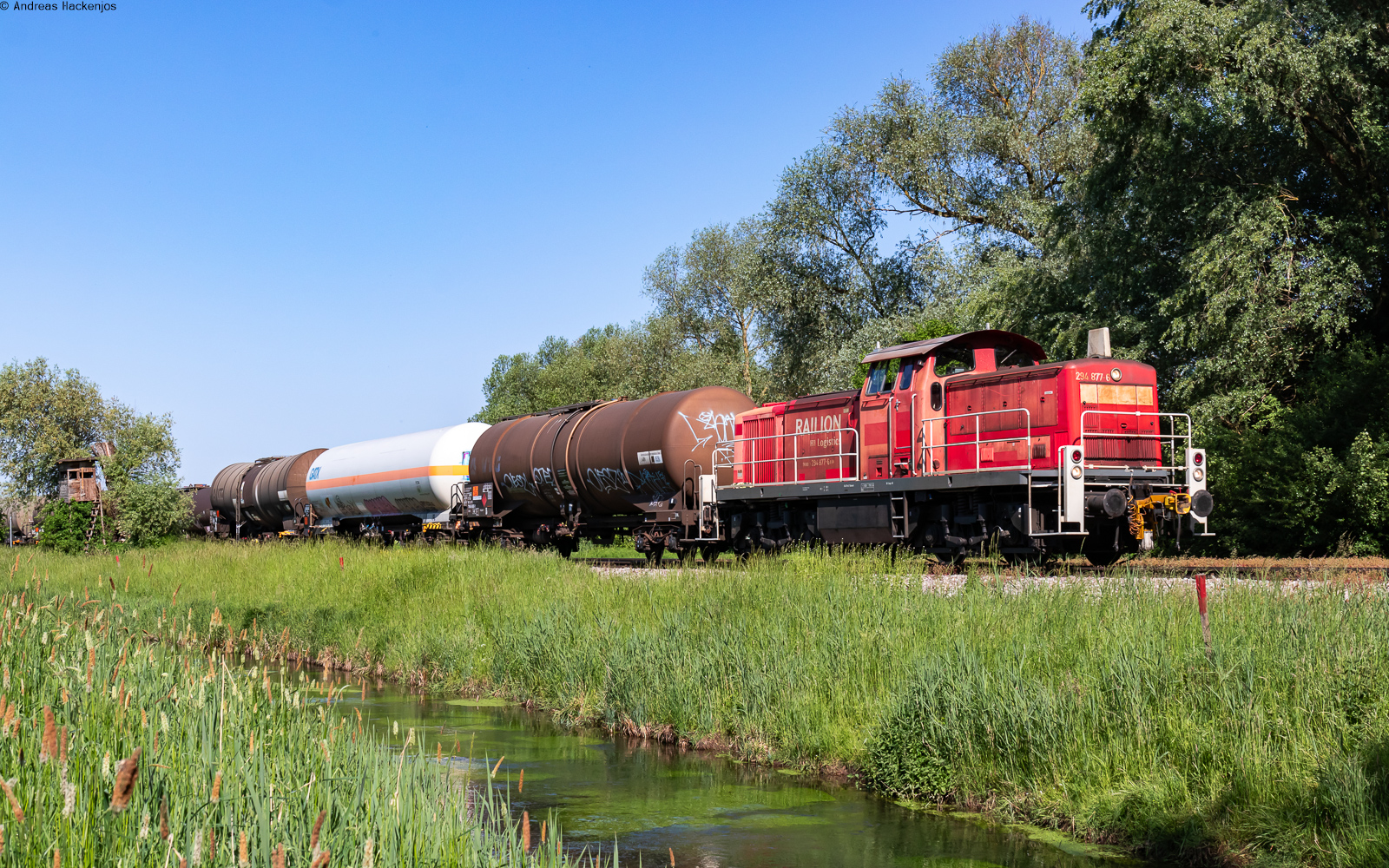 294 877 zieht Kesselwagen für die Übergabe Greffern - Bühl aus der DOW Rheinmünster 2.5.25