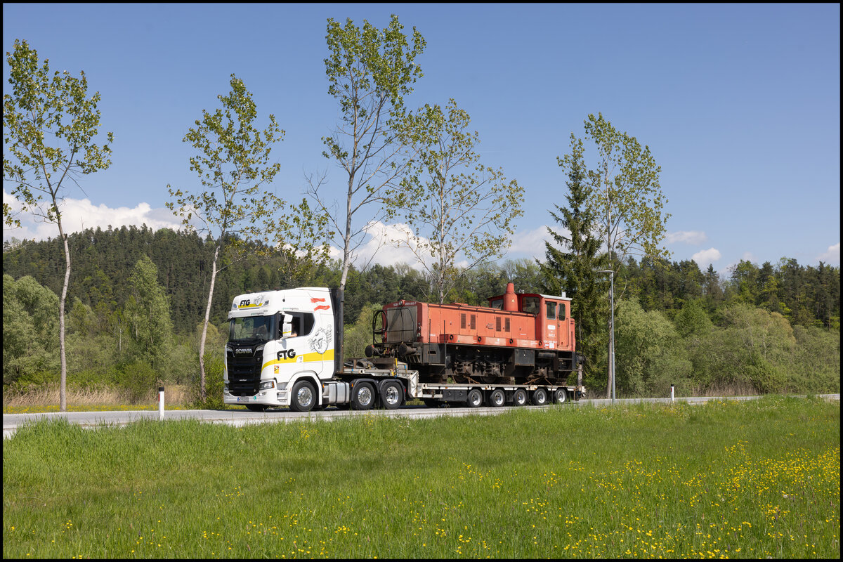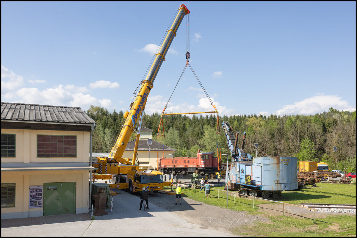 Los geht´s ,.. Am Haken , was sonst die Aufgabe der Diesellok war , schwebt Sie los zu Ihrem neuen Platz . 29.04.2025