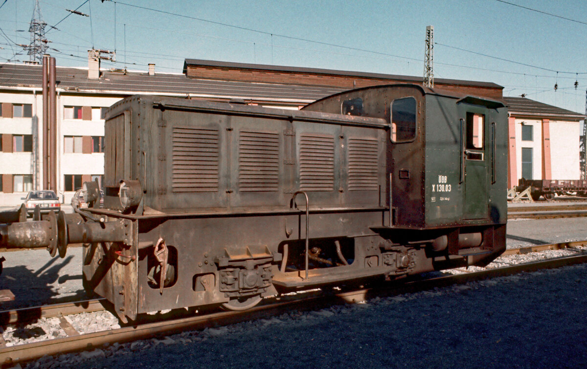 Das ÖBB-Bahndienstfahrezug X 130.03 im Jahre 1980 in der Zugförderung Wörgl. Dieses Tfz. wurde 1943 an ein Unternehmen geliefert, gelangte 1945 an die ÖStB/ÖBB und bekam dort die Nummer Köe 24922.