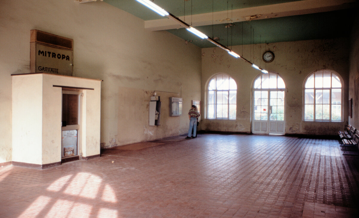 Lost Places: Die Wartehalle des "Bayrischen Bahnhofs" in Leipzig, aufgenommen am 14.10.1990.