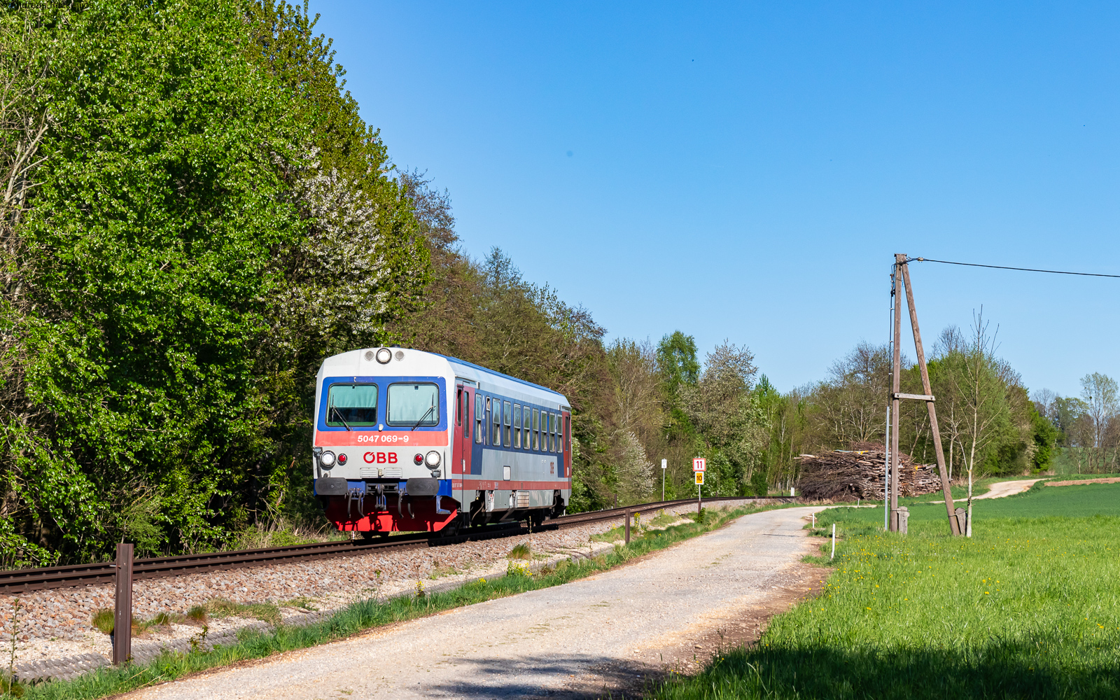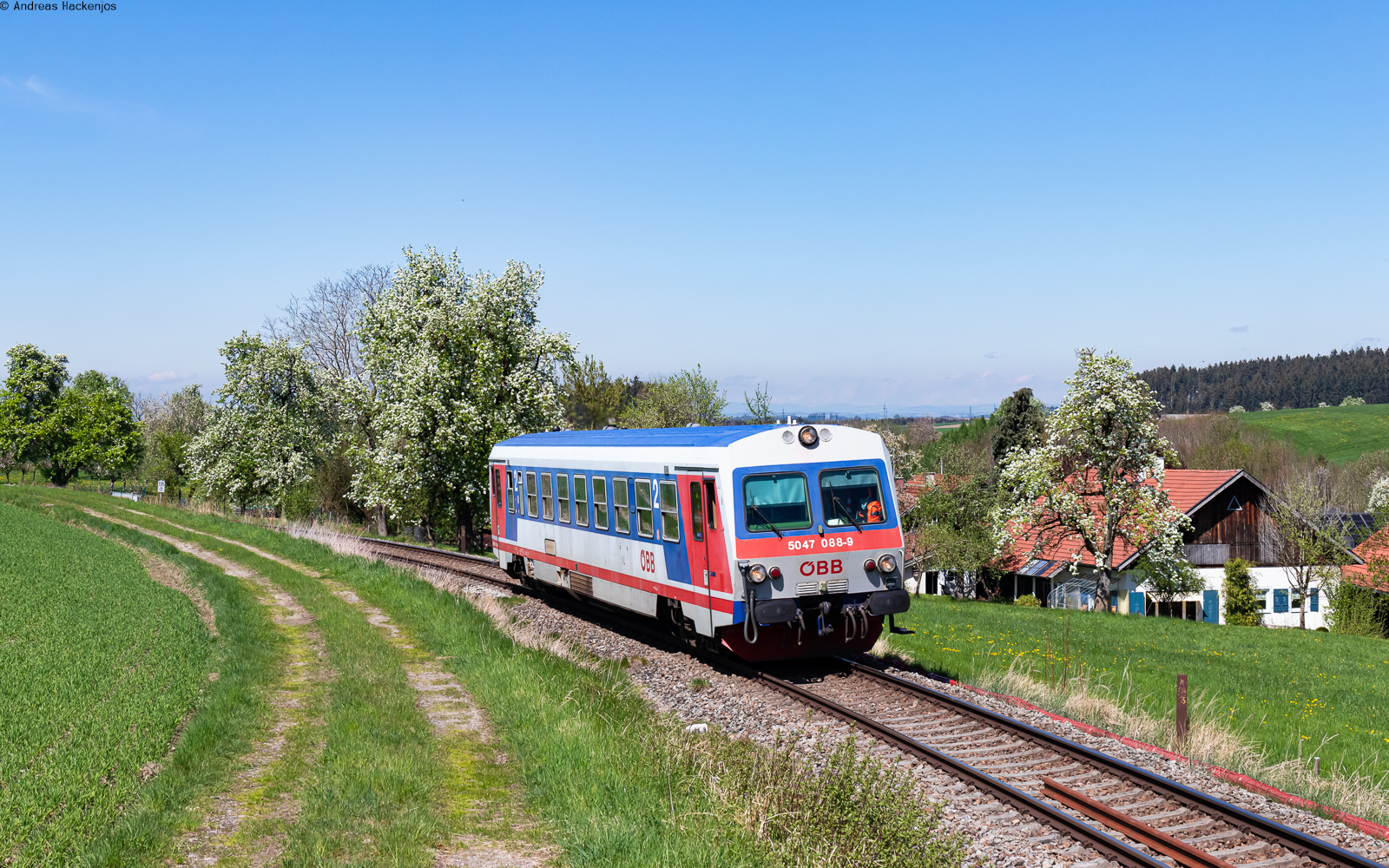 5047 078 als R 3473 (Attnang-Puchheim – Schärding) am Haltepunkt Oberbrunn im Innkreis 19.4.25