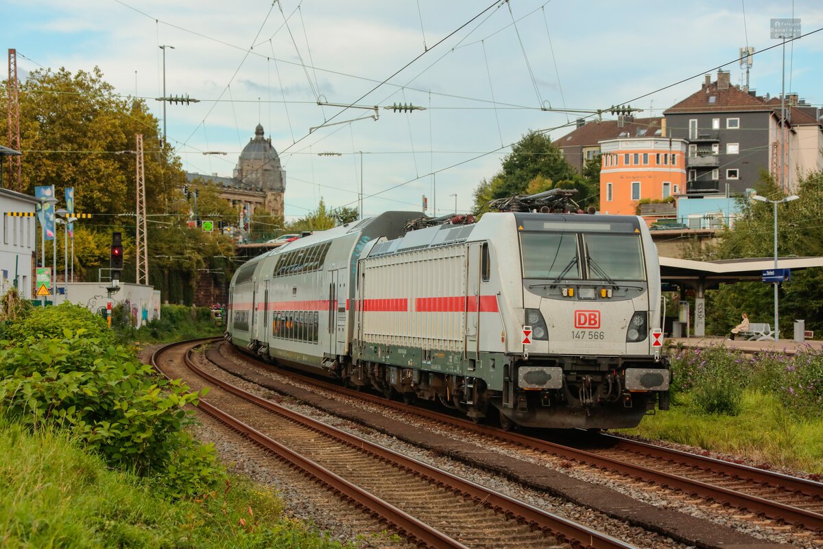 Da die Anzahl an Ersatzzügen in NRW angestiegen ist, musste TRI im Laufe des Jahres Fahrzeuge von DB Gebrauchtzug anmieten. Nach langer Zeit sind dadurch wieder rote Doppelstockwagen zwischen Hamm und Düsseldorf als RE3 im Einsatz. Am Ende schiebt 111 131. Oktober 2025