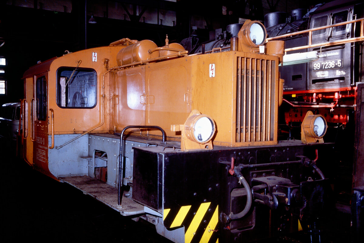 DR-Schmalspurlok 199 010, aufgenommen am 10.04.1991 bei einer Führung durchs Bw. Wernigerode-Westerntor.