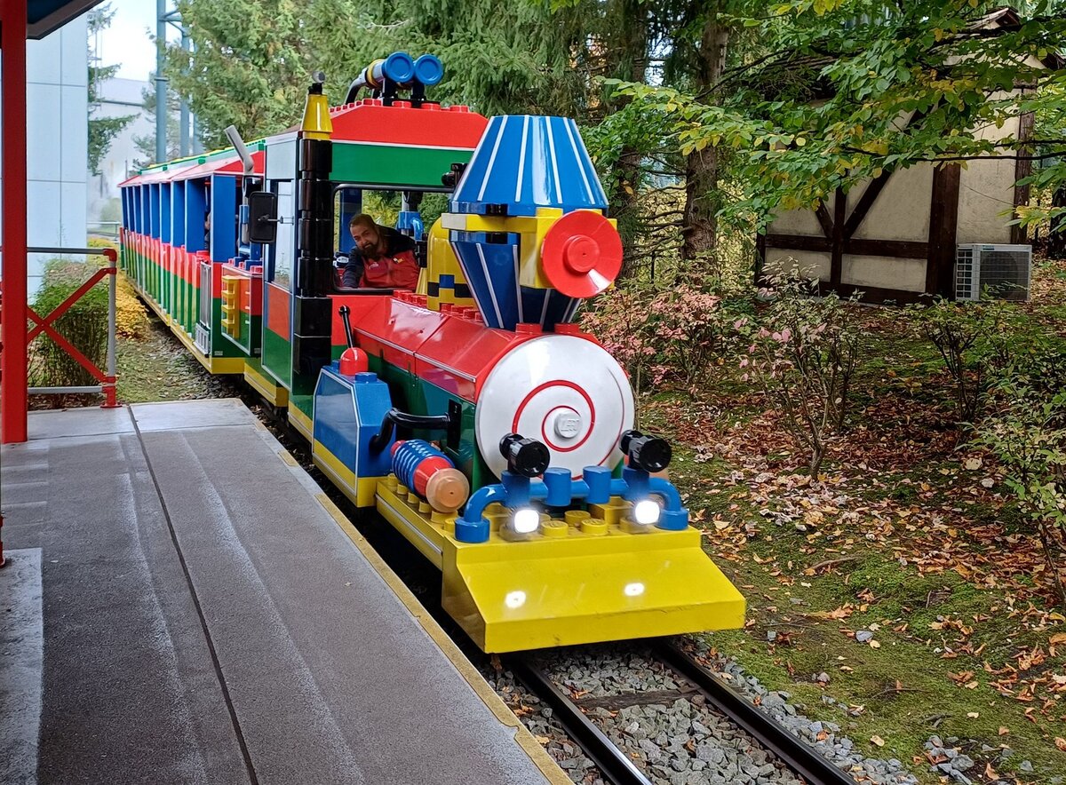 Im Legoland Deutschland in Günzburg dreht auch der Legoland Express täglich seine Runden; 14.10.2025.