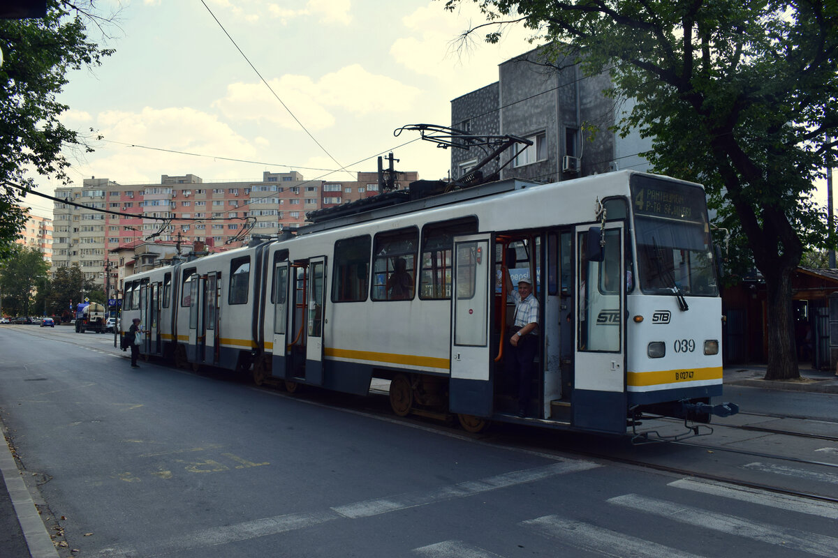 Triebwagen 039 steht an der Haltestelle Bulevardul Ferdinand und ist auf der Linie 14 auf der Soseaua Pantelimon unterwegs.