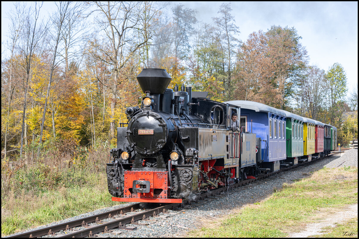 Die Weichen sind wohl gestellt für den Flascherlzug . Und das hat nicht nur Andi in der Hand , Danke an dieser Stelle für die Zustimmung zum Bild . 24.10.2025 im Bahnhof Preding Wieselsdorf.