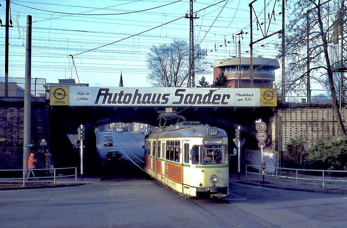 SSB Stuttgart__Gleis- und Tunnelbau__Fahrschulwagen GT4 402 kommt vom Hbf in Richtung Schloßplatz. Eine anspruchsvolle Übungsstrecke..._11-1974
