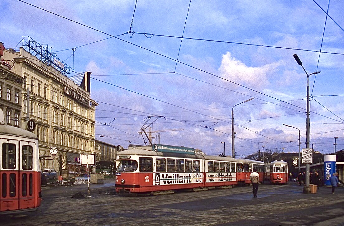 Sommer 1984. Münchener Straßenbahn mit Wagen der Baureihe M