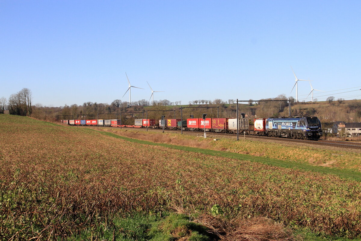 Lok 186123 von Railtraxx in Fouron-Saint-Martin mit ein Shuttle Güterzug Antwerpen - Linz, 12/4/2025