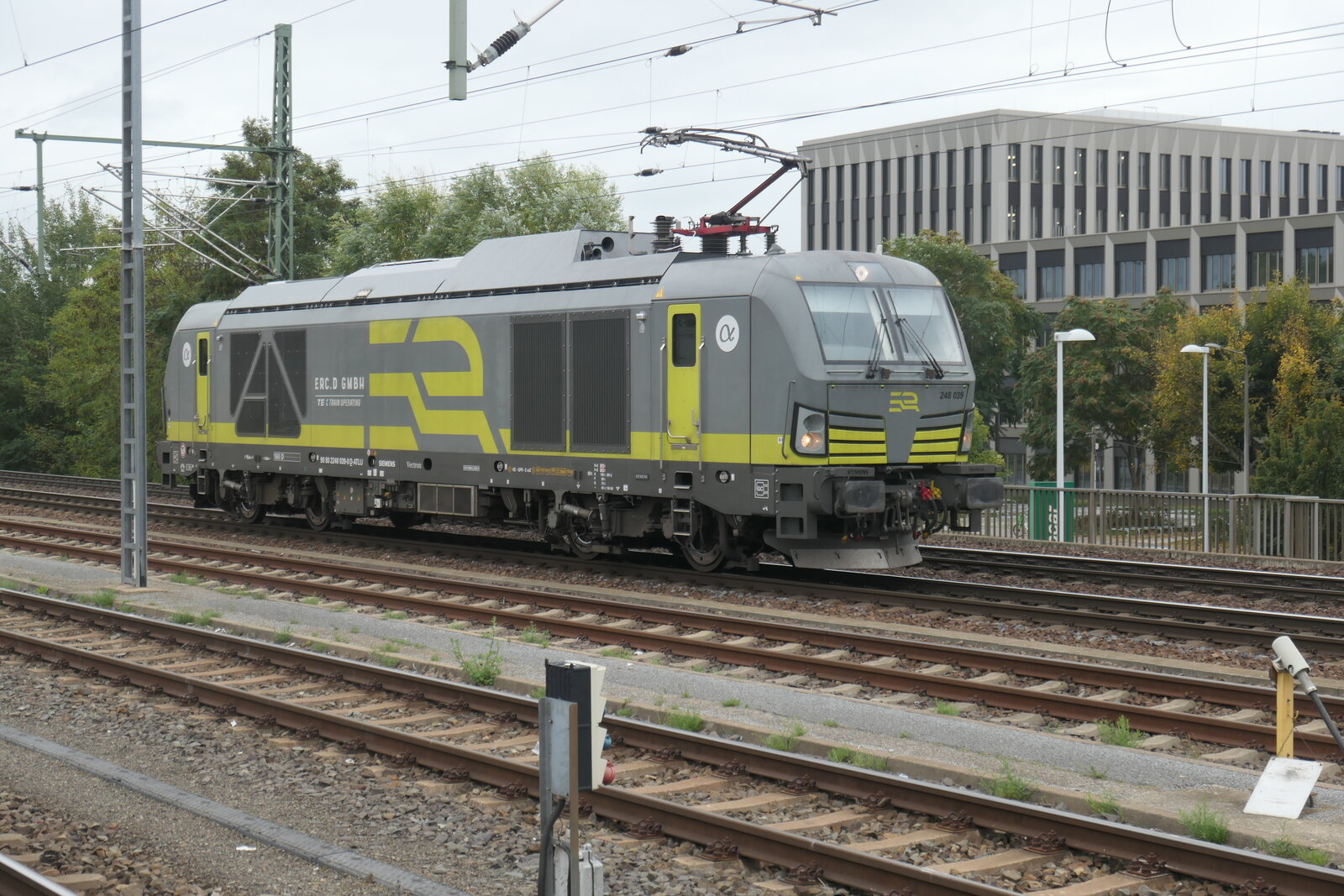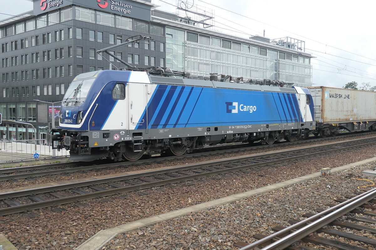 388 019 mit einem Güterzug bei der Durchfahrt durch Dresden Hauptbahnhof im September 2025