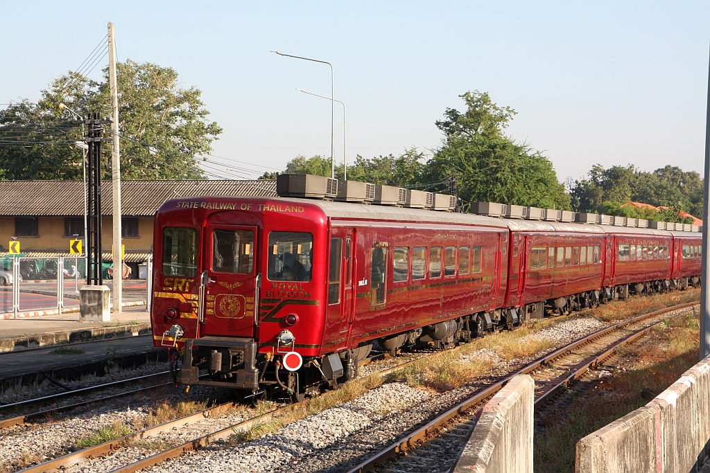 บจพ.ป.431 (บจพ.ป.=ARS./Air-Conditioned Reserved Saloon) am 06.Dezember 2025 als letztes Fahrzeug des aus der Bang Sue Junction fahrenden ROYAL BLOSSOM Excursion 923 (Hua Lamphong - Kaeng Sue Ten).