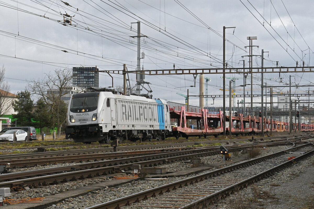 Lok 187 006-2 durchfährt am 26.01.2026 den Bahnhof Pratteln.