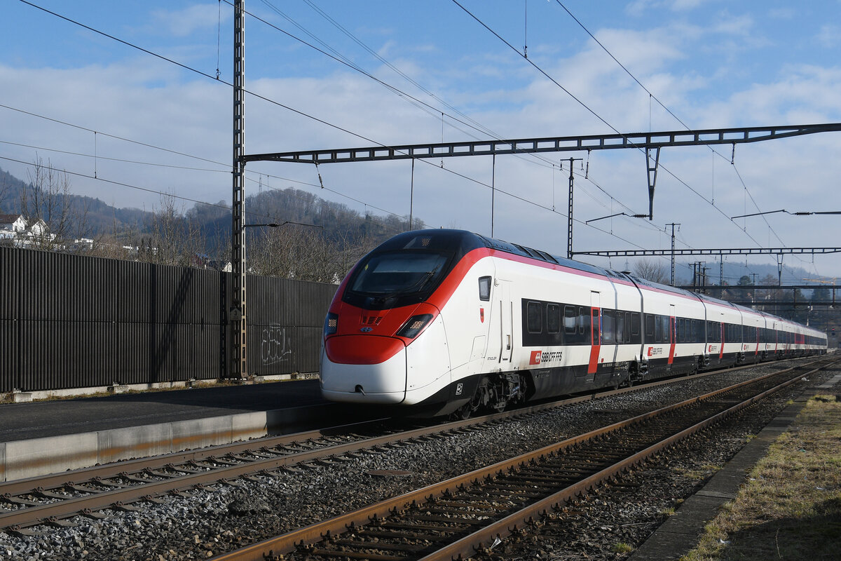 RABe 512 048-5 KISS durchfährt am 10.02.2026 den Bahnhof Pratteln.
