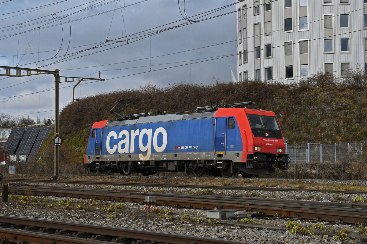 Re 484 001-3 durchfährt am 26.01.2026 solo den Bahnhof Pratteln.