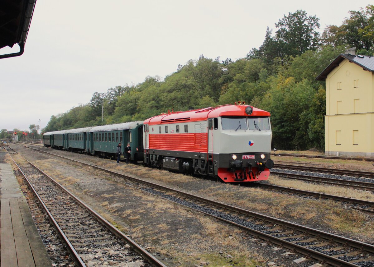 T478.1010 stand am 08.10.23 einen Sonderzug im Rahmen des Badotka Treffen in Lužná u Rakovníka mit einen Sonderzug in Lužná u Rakovníka bereit.