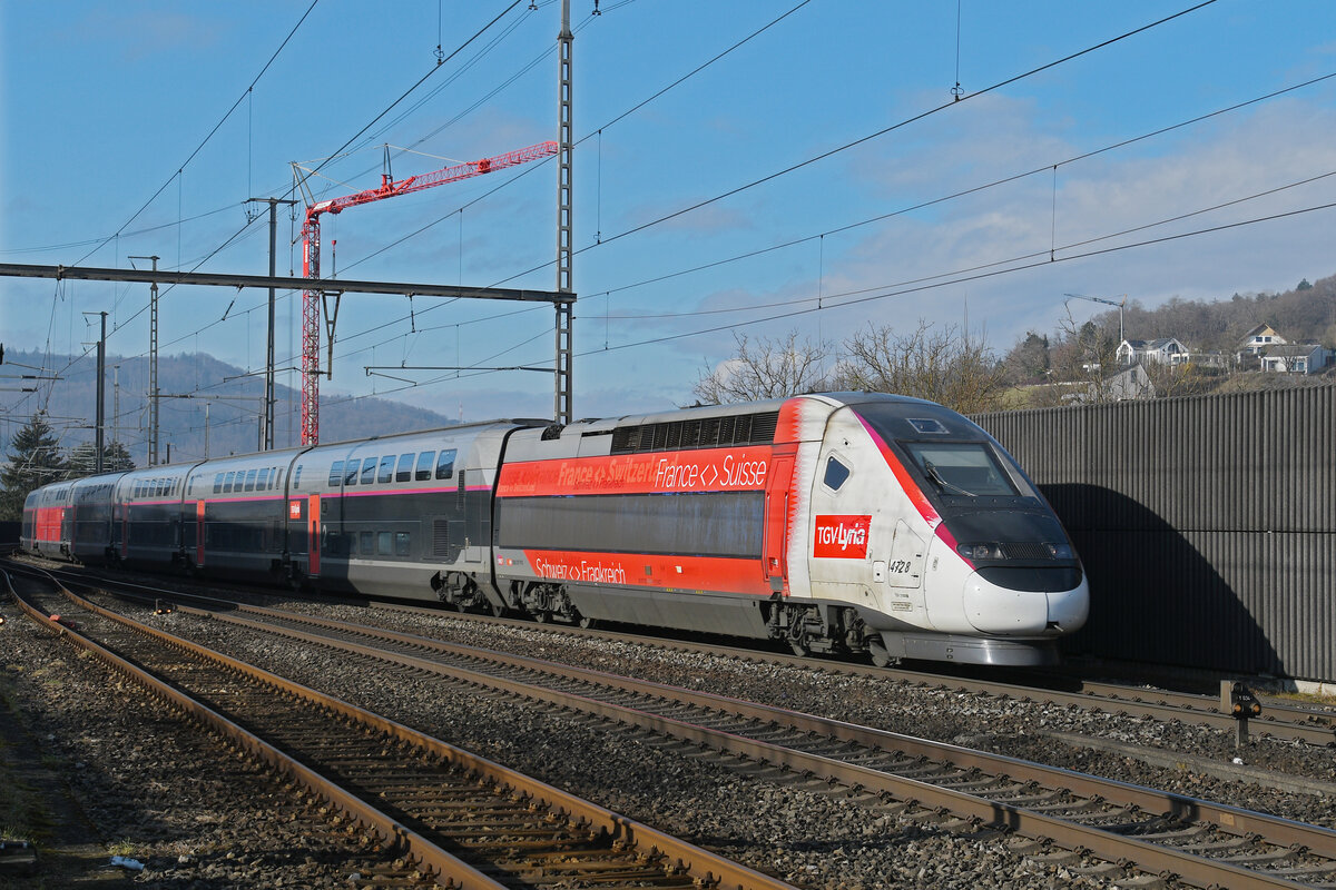 TGV Lyria 4728 durchfährt am 02.02.2026 den Bahnhof Gelterkinden.